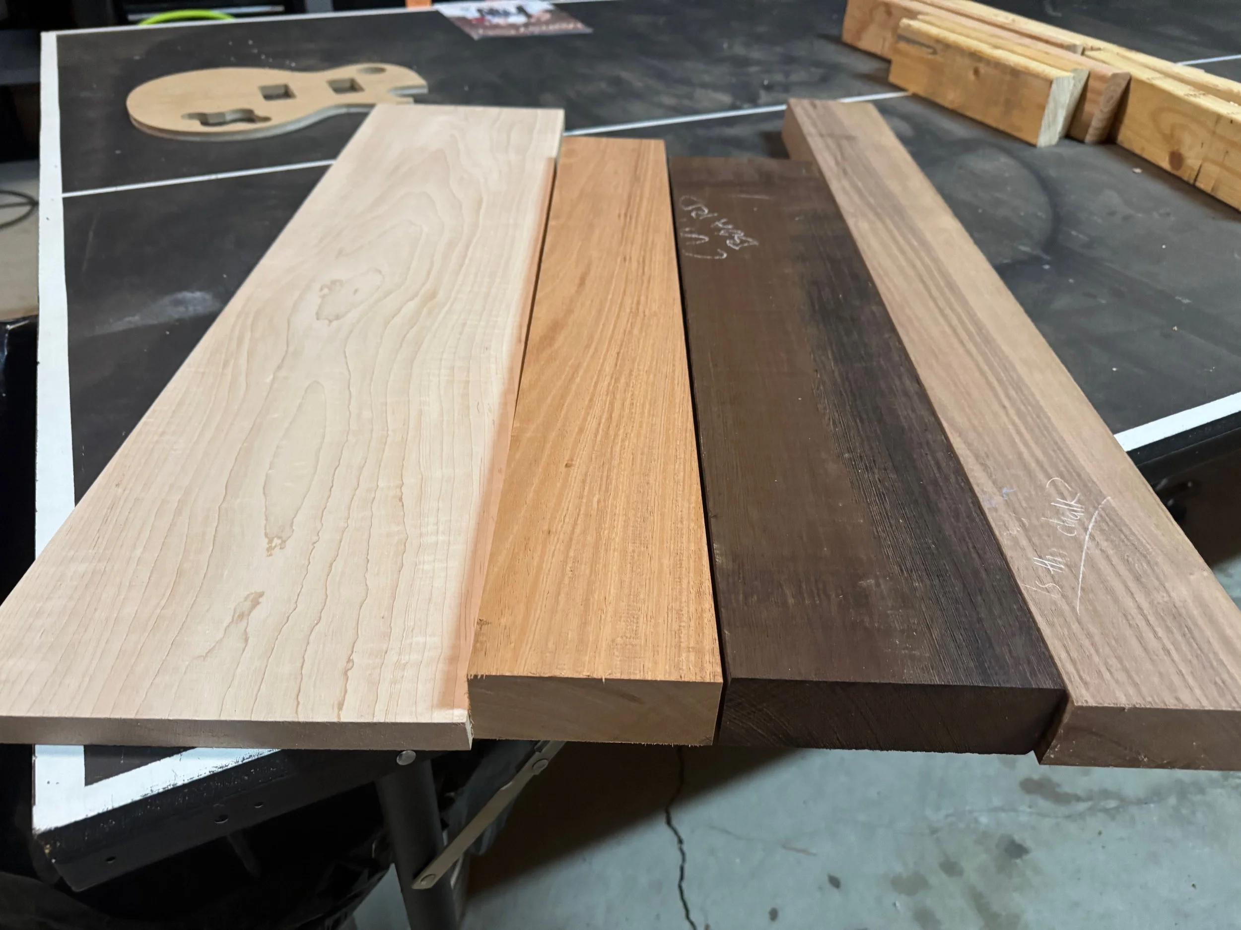 From left to right: Maple, Mahogany, Wenge, Walnut